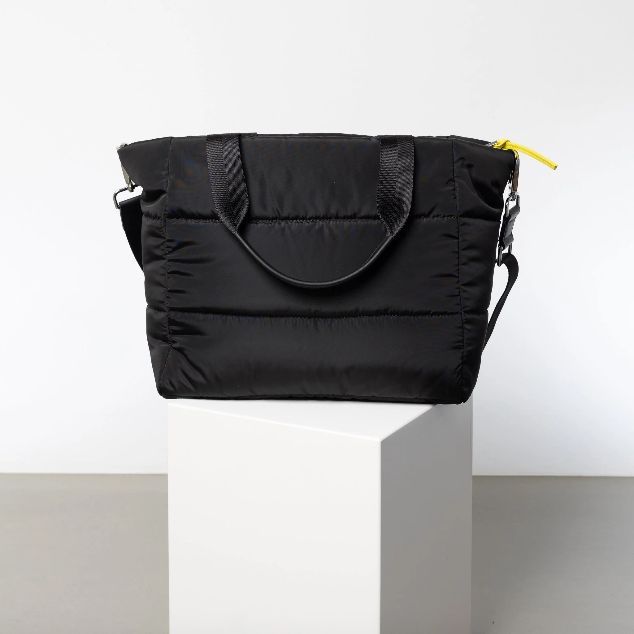 padded tote bag medium + strap basic woven slim - black