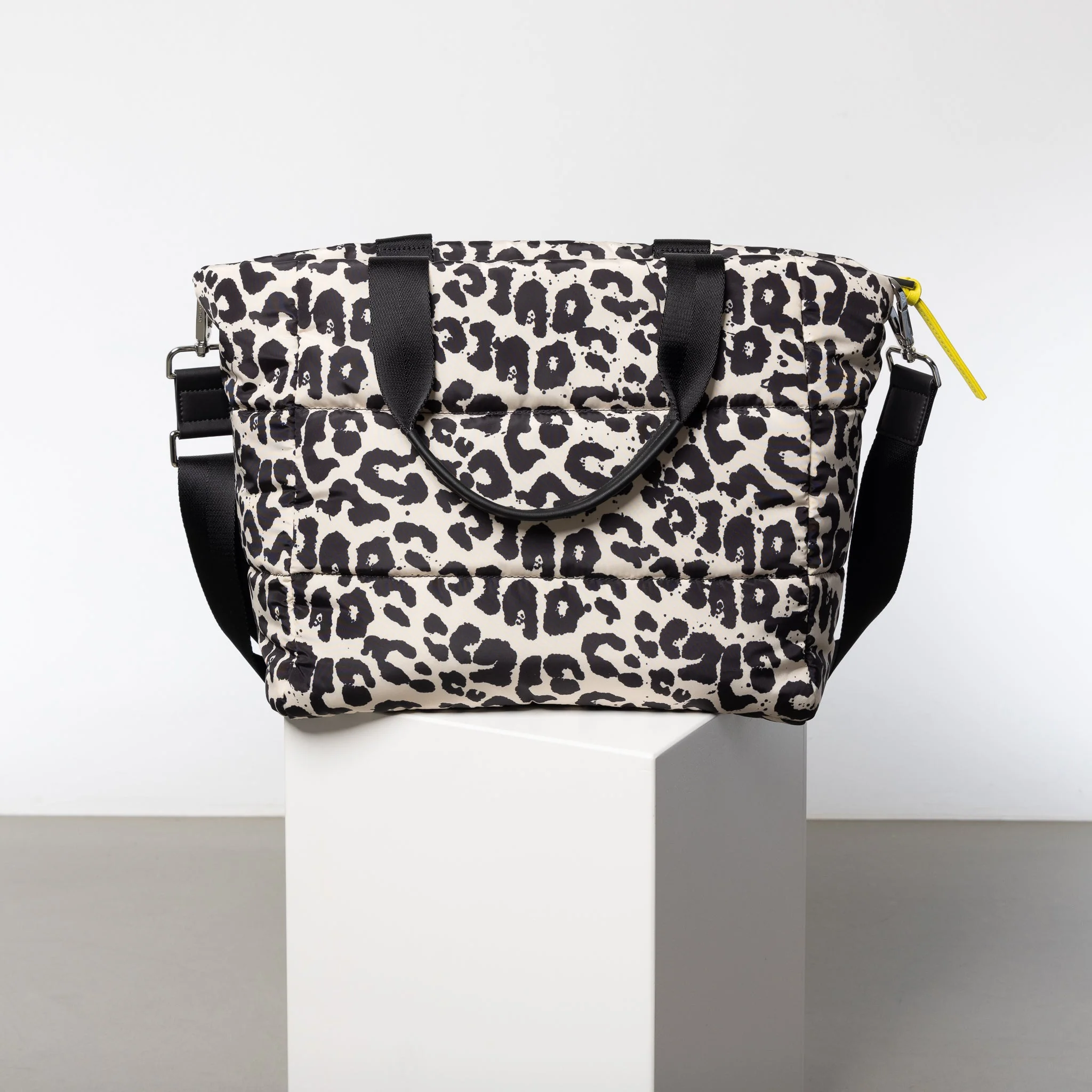 padded tote bag medium + strap basic woven slim - leo splashes black/sand